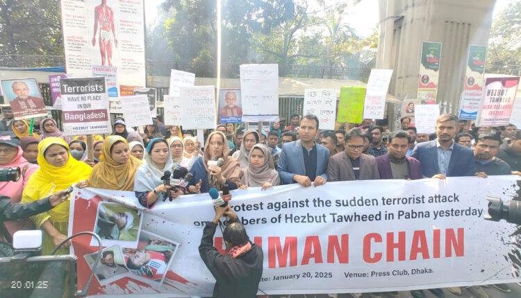 পাবনায় হেযবুত তওহীদ সদস্যদের উপর হামলার প্রতিবাদে মানববন্ধন