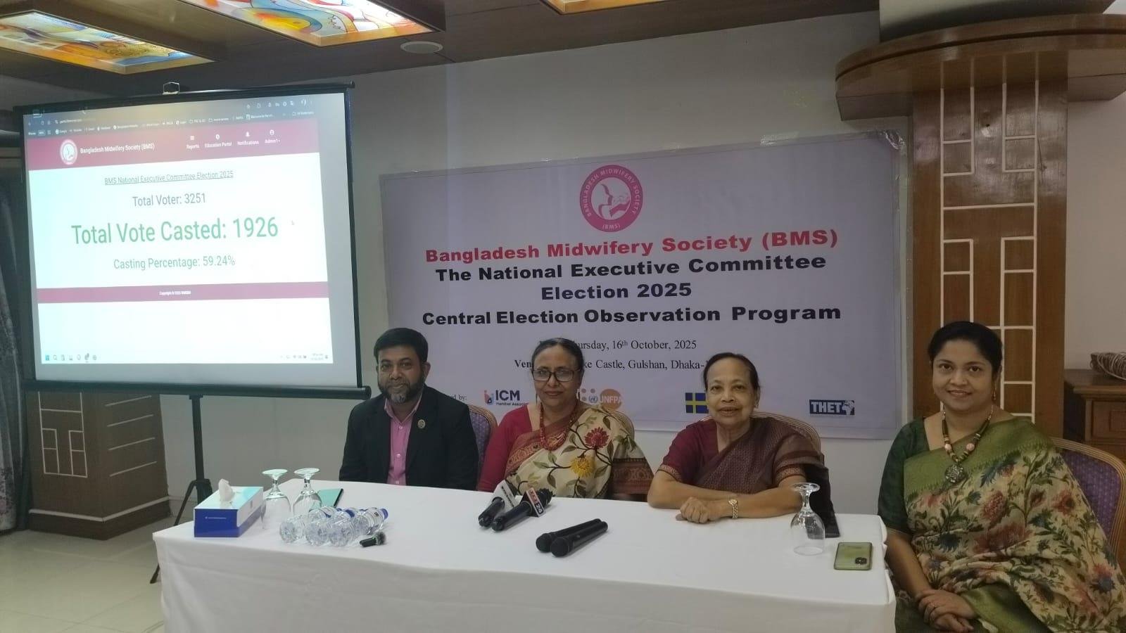 রিপোর্টঃ কাইয়ুম হোসেনঃ ১৬ অক্টোবর বৃহস্পতিবার রাজধানী ঢাকার গুলশানের হোটেল লেক ক্যাসেল এ অনলাইনের মাধ্যমে এ নির্বাচন অনুষ্ঠিত হয়। সকাল ৮.০০ থেকে বিকেল ৪.০০ পর্যন্ত বাংলাদেশ মিডওয়াইফারি সোসাইটি (BMS) জাতীয় নির্বাহী কমিটি (NEC) নির্বাচন – ২০২৫ চলতেহ থাকে। স্বচ্ছতা ও সুষ্ঠুতা নিশ্চিত করতে পর্যবেক্ষকগন ছিল সতর্ক অবস্থানে। এই নির্বাচনে ৮টি পদে মোট ২৪ জন প্রার্থী প্রতিদ্বন্দ্বিতা করছেন।